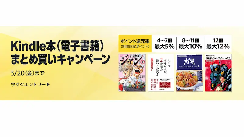 • Kindle本:最大70%割引、最大12%還元のまとめ買いキャンペーン