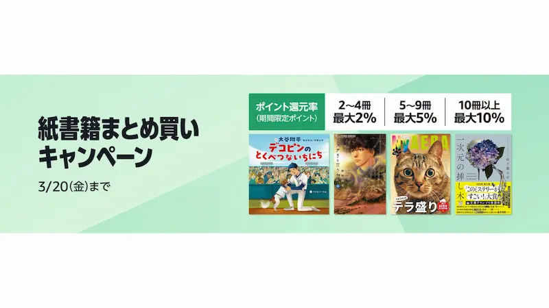• 紙書籍:最大10%還元のまとめ買いキャンペーン